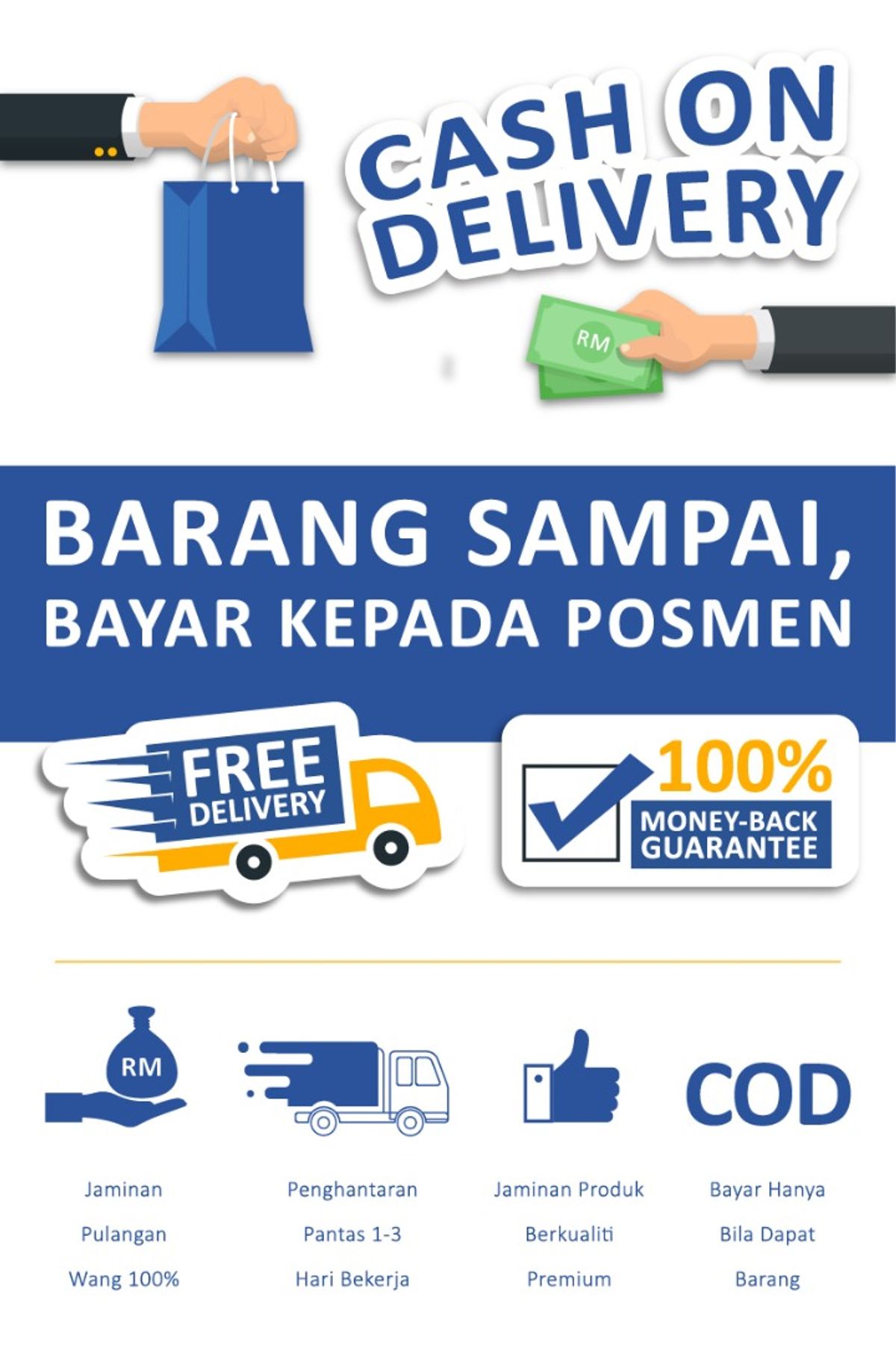 Terima kasih kerana membeli produk barangan kami. Barang anda akan dihantar dalam masa 24-48 jam menggunakan rangkaian kurier kami Ninjavan, Poslaju atau J&T. Pastikan item yang dihantar adalah daripada syarikat kami Rezeki Ilham Marketing Sdn Bhd